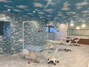 奥に進むとキャプテンルームのキッズ専用の予防診療台スペースがあります。船の上や船長室をイメージしています。予防診療台スペースはお子さまだけで入室をして頂きます。