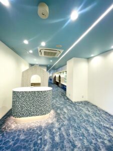 1階エレベータホールから海の世界の始まりです。お子さまがワクワクするような、楽しく通えるような気持ちになれるようにと考えました。専用エレベーターにて2階におあがりください。
